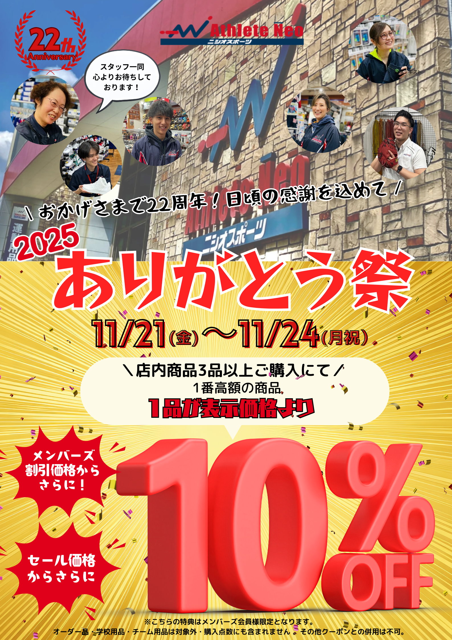 | 職種 | ①スポーツ用品の販売・接客業 ②倉庫での検品・出荷業務 |